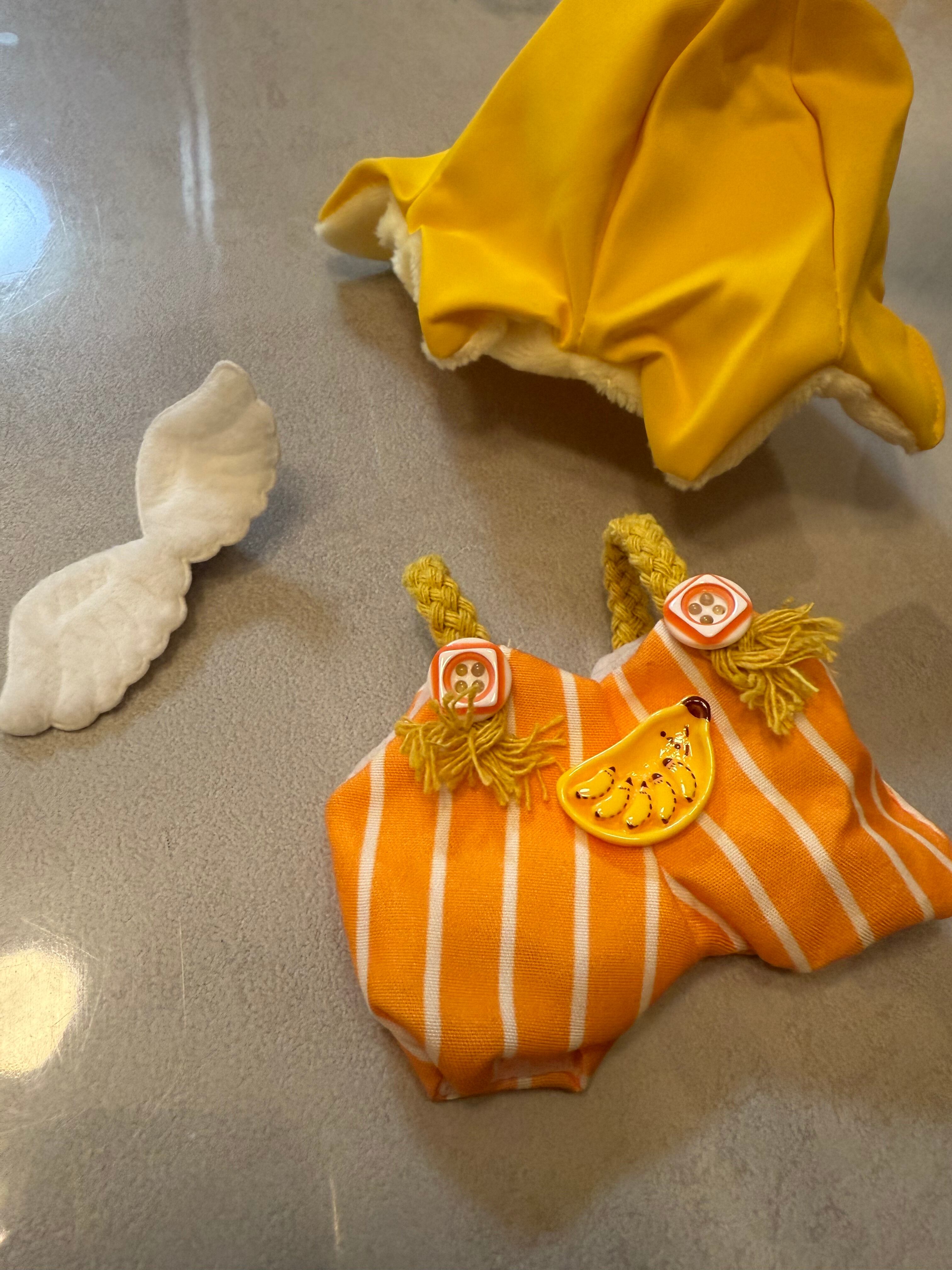 【10cm 12cm】ぬい服 バナナ ぬいぐるみ用 バナナの被り物 オーバーオール 羽付き オレンジ イエロー